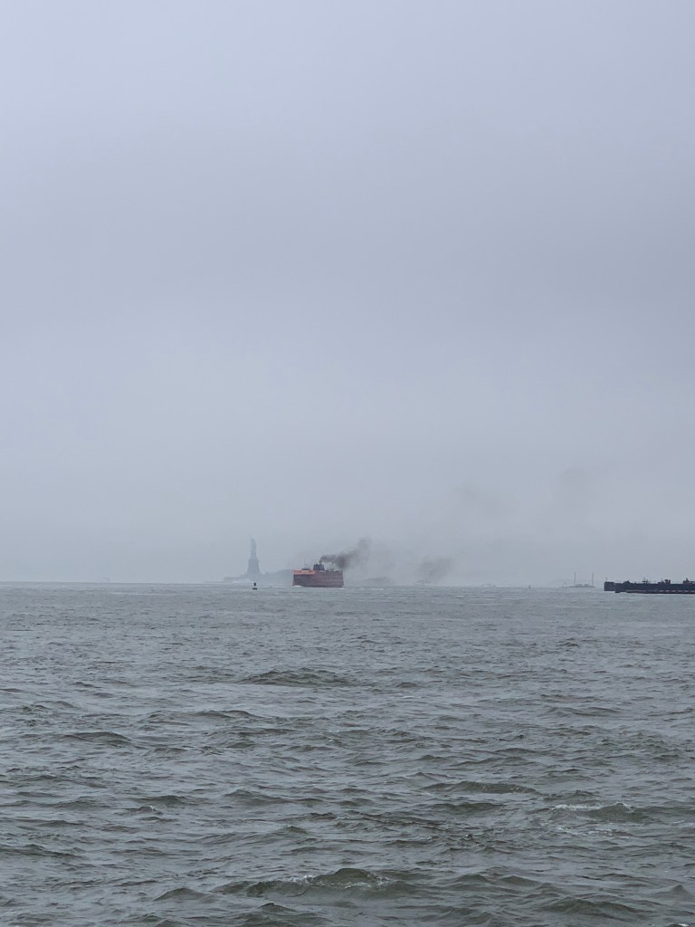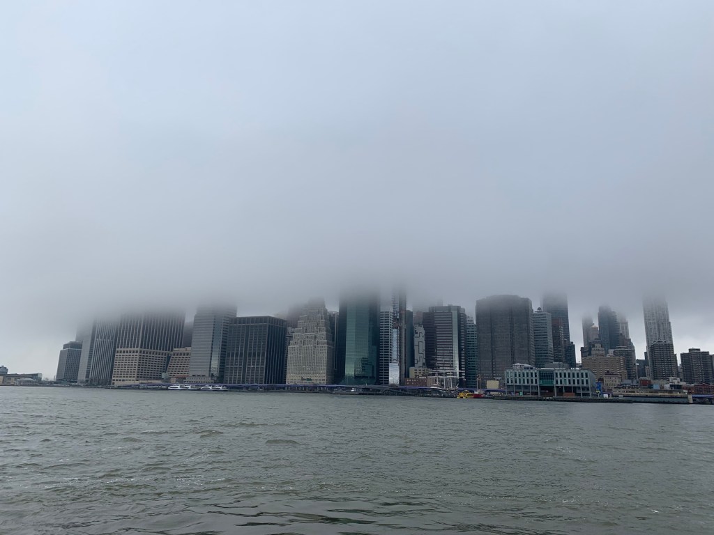 Continuing on in the direction of the piers spilling out into the East River and the bay, I walked to pier 5, out towards the water. I spent about 15 minutes or so watching the fog roll off Lady Liberty’s upward arm. The clouds slicing FiDi’s buildings in half. An ominous chill sweeping up from the Atlantic. At that moment, I felt compelled to check my email. Lo and behold two emails from my Guggenheim account declaring my deep suspicion 1. since the museum is closed indefinitely, interns cannot telecommute or work remotely; and 2. that my extension was no longer needed for the Advancement team.